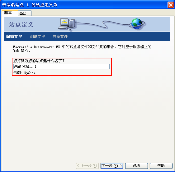 在红色框“未命名站点1”中输入站点的名字,(最好是英文的)比如:51RICH。此建站名就方便于制作网站时管里站点下面的目录和页面。
