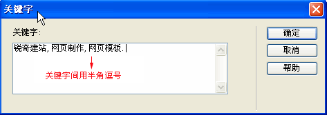 一些搜索引擎会对页面的关键字数加以限制,超过的字符就忽略了,所以我们要选择简洁而又有代表性的词语作为关键字。注意,各个关键字间用半角逗号分开。